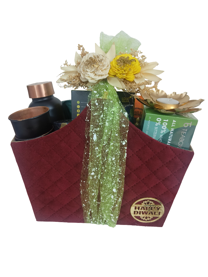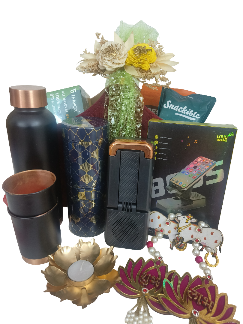 A premium festive hamper blending technology, gourmet treats, traditional elements, and luxurious packaging β€” perfect for gifting a complete festive experience.